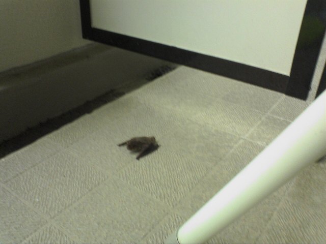 数分間の攻防(コウモリくんが飛ぶ、私のスウェーバック、コウモリくんベランダに着地)の末、彼は空の彼方に飛んでいきました。